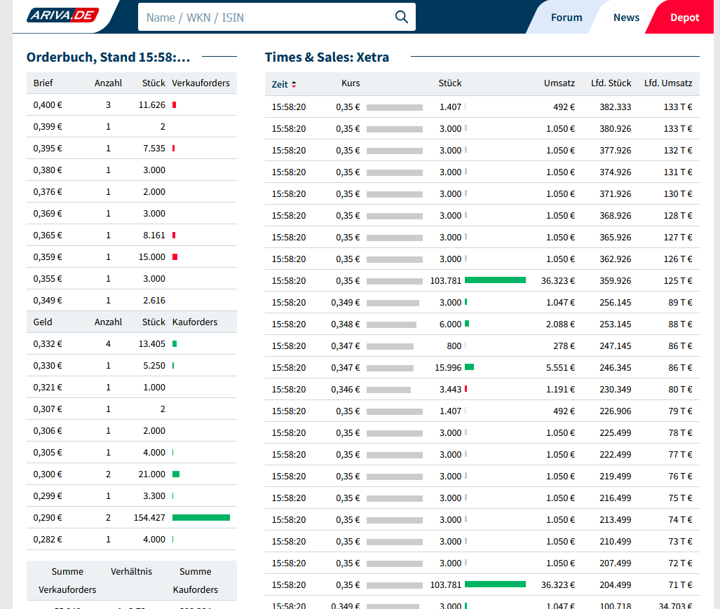 die etwas größere Order zu 0,35€