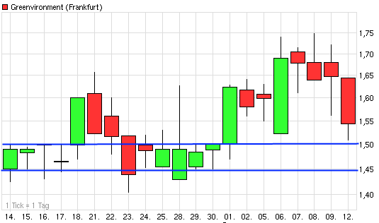 Ich bin bei 1,65 rein, bin also schon deutlich im Minus. Ich warte noch die nächsten Tage ab, hoffe auf den Segmentwechsel, der mich darin bestärken würde, dass Greenvironment tatsächlich noch was zustande bringt.