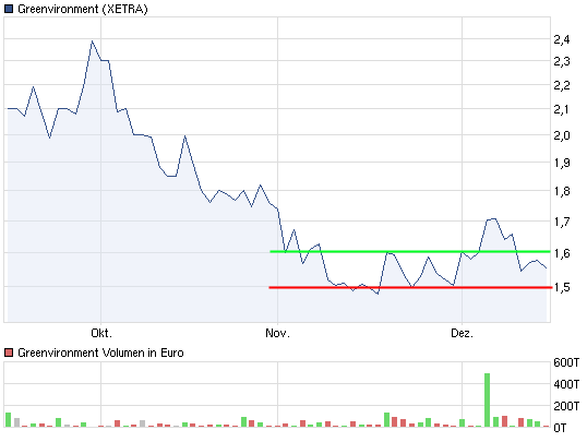 und wieder ein neues tief gemacht. mustergültiger kann ein abwärtstrend nicht sein. fällt morgen noch die 1,44 € auf schlusskurs, fällt greenvironment ins bodenlose.