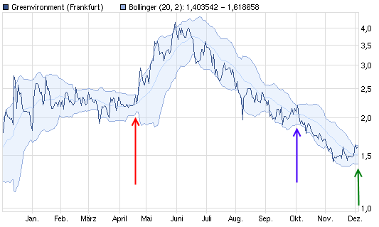 Im Jahreschart ist bei der Verengung immer ein Richtungswechsel zu erkennen. Die Richtung kann anhand des Bandes nicht bestimmt werden, daher sind immer andere Faktoren mit einzubeziehen.