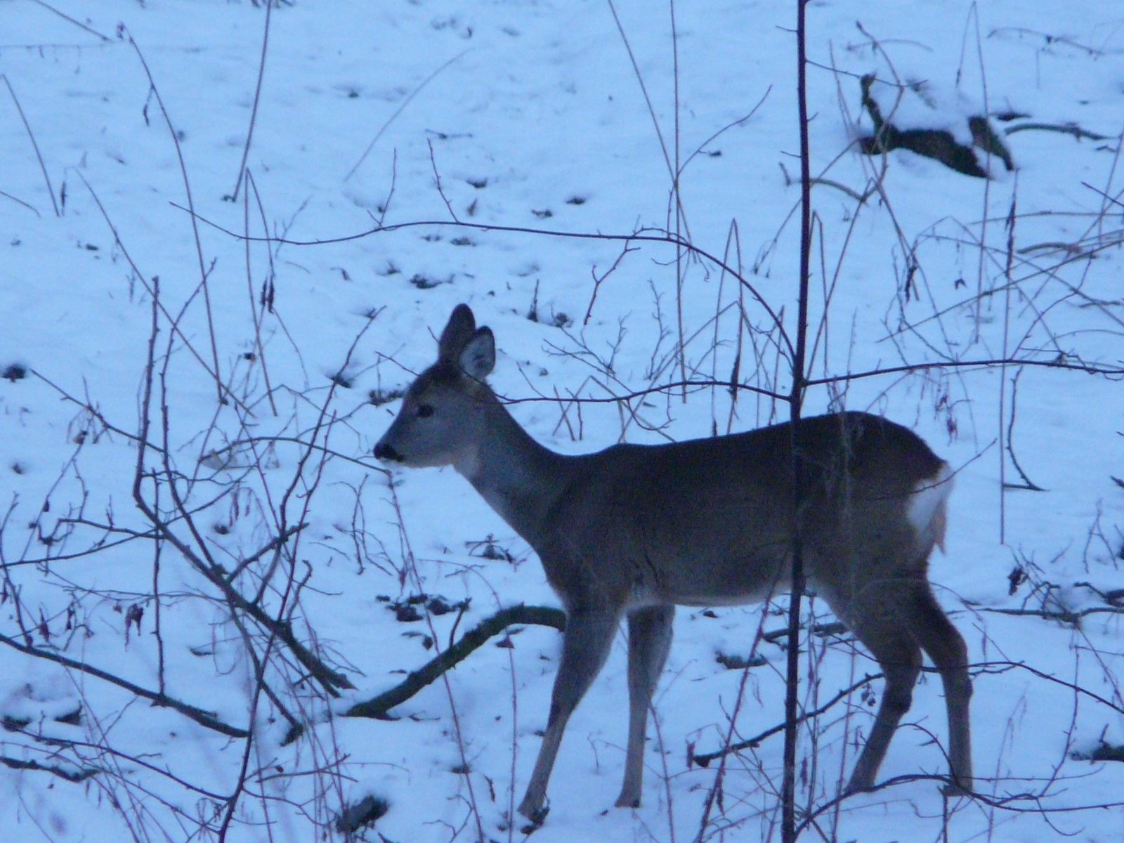 hier auf der oberen Wiese, ein Rehbock mit 3 Rehen lebt bei uns im Winter seid 2 Jahren immer im Auenwald, leider habe ich in diesem Winter noch keine Hasen gesehen, im vorigen Jahr sind sie immer vor dem Auto gehoppelt wenn ich die Schafe mit Mohrrüben gefüttert habe und auf die Weiden gefahren bin