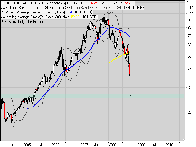 Der Kursverfall der Aktie spiegele nicht den Geschäftsverlauf des Unternehmens wider. So seien die Auftragsbücher immer noch prall gefüllt, wenngleich man angesichts der Finanzmarktkrise mit einer schwächeren Entwicklung in den kommenden Monaten rechne, sofern sich erste Banken aus der Projektfinanzierung zurückziehen sollten. Demgegenüber dürften bei staatlichen Interventionen gerade Infrastrukturprojekte gefördert werden. Die HOCHTIEF-Tochter Flatiron könnte dementsprechend ein Profiteur des Wahlsiegs der Demokraten in den USA sein, wenn die Regierung mit Infrastrukturprojekten die Konjunktur stütze.