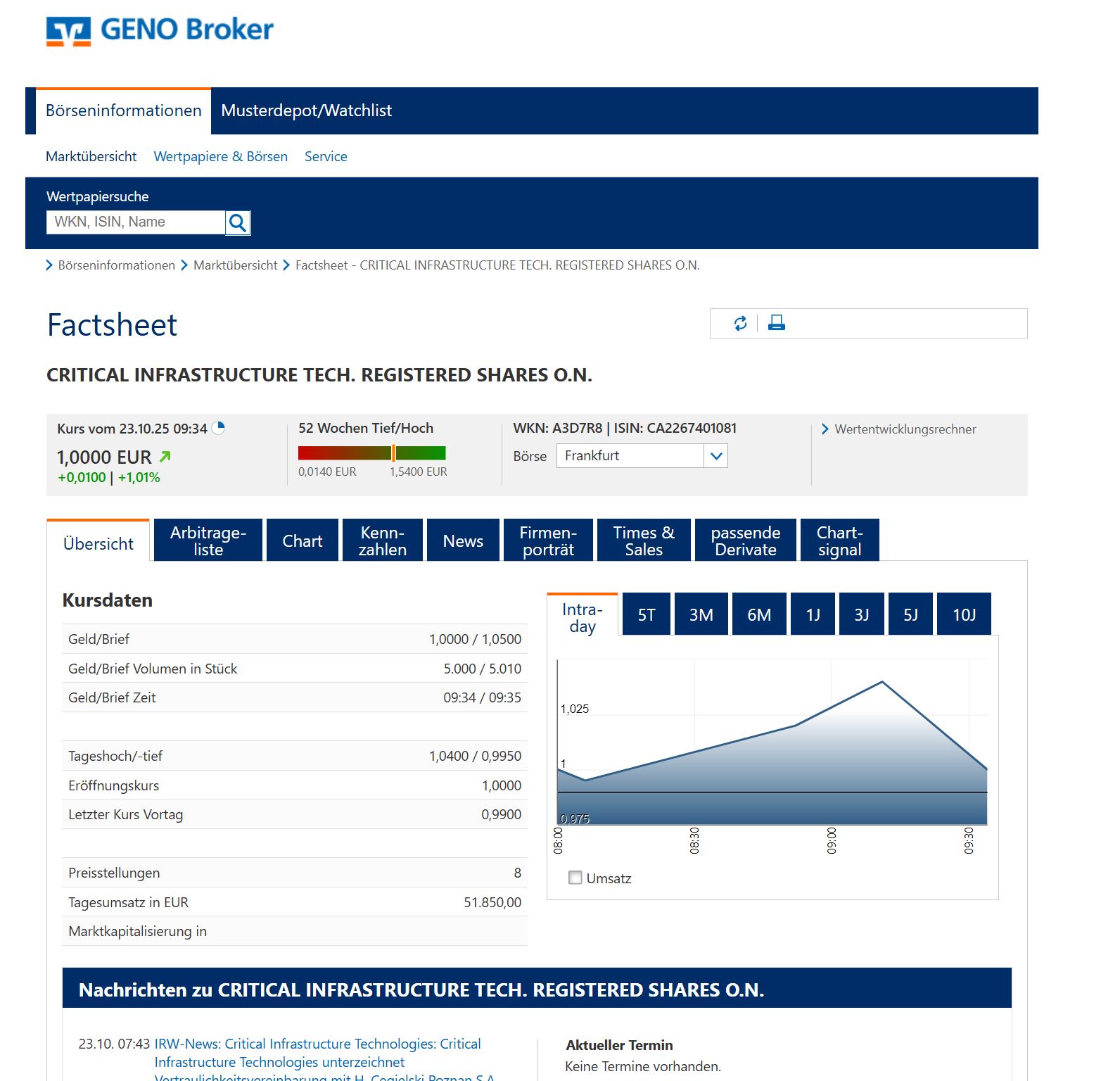 Handelt hier jemand über Geno Broker? Freischaltung für Risiko Aktien liegt vor, aber ein Kauf ist nicht möglich. Aktie ist scheinbar nicht gelistet bei Geno, oder?