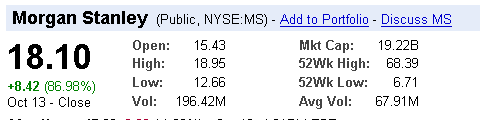 The MUFG investment further bolsters Morgan Stanley's already strong capital position. Morgan Stanley's Tier 1 Capital Ratio is now estimated to be more than 15.5 percent on a pro-forma basis as of August 31, 2008. This is far in excess of the 6 percent required by the Federal Reserve to be treated as well-capitalized and is one of the highest Tier 1 Capital Ratios among bank holding companies peers. The MUFG investment also reduces Morgan Stanley's leverage ratio to just under 20 times and its adjusted leverage ratio to just over 10 times on a pro-forma basis at August 31, 2008. In addition, Morgan Stanley has continued to reduce the size of its balance sheet since the end of the third quarter. As of today, total assets are now under $900 billion, down from $987 billion at August 31, 2008.