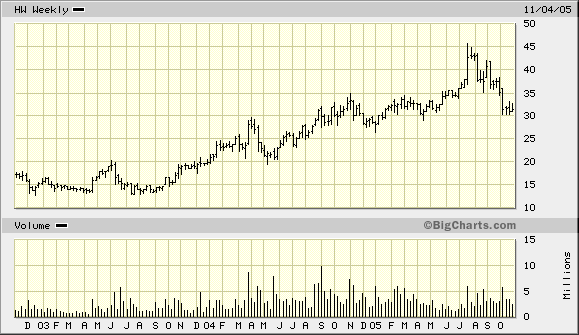 HW hat ein 2005-KGV von 13 (Stand: 4.11.05) und hat während der letzten 5 Jahre jedes Jahr rund 30 % Gewinnwachstum ausgewiesen.