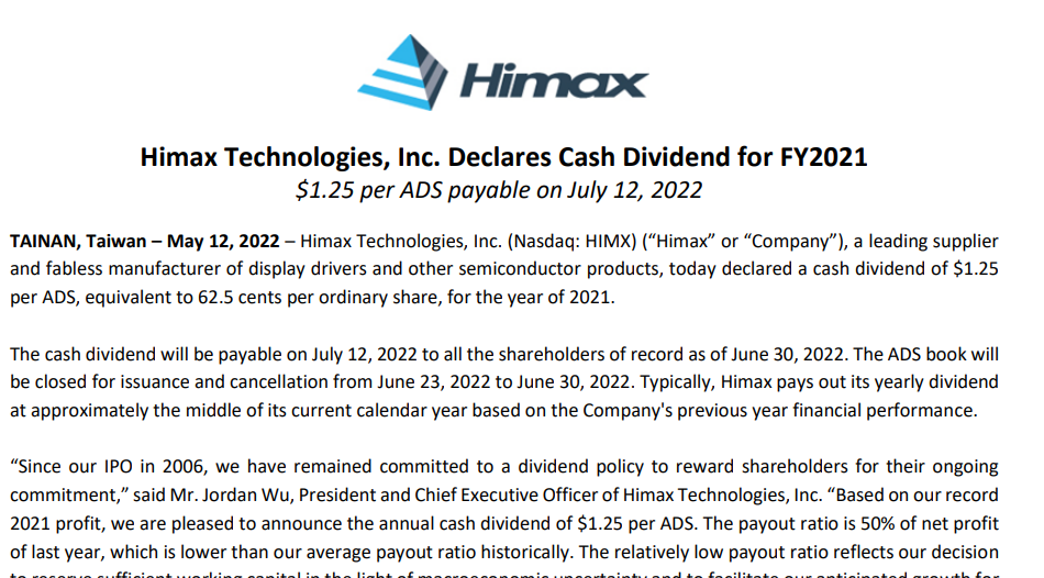 WKN: A0JKBX / ISIN: US43289P1066Himax
