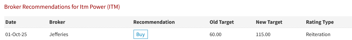 Jefferies hebt Kursziel für ITM Power von 60 auf 115 Pence an und bestätigt Kaufempfehlung. Die Wasserstoffaktie reagiert mit 7 Prozent Plus auf die positive Bewertung.