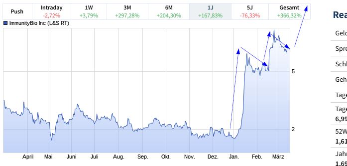 Ja, Anfang 2021 stieg die Aktie in die 40er Dollar. Aber es wurde zu Beginn dieses Laufs nicht unter dem Ticker "IBRX" gehandelt – es wurde unter dem Ticker NK (NantKwest) gehandelt.