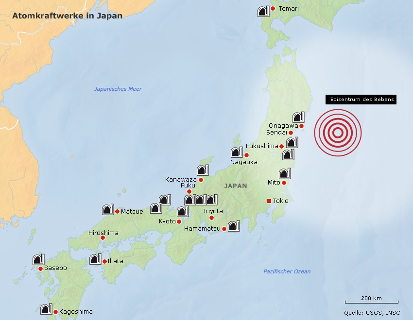 "Seitdem müssen alle Reaktoren mindestens Erdstößen der Stärke 7,75 standhalten können, in besonders gefährdeten Regionen sogar Beben bis 8,25. Das Beben vom Freitag hatte eine allerdings eine Stärke von 8,8 bis 8,9. "