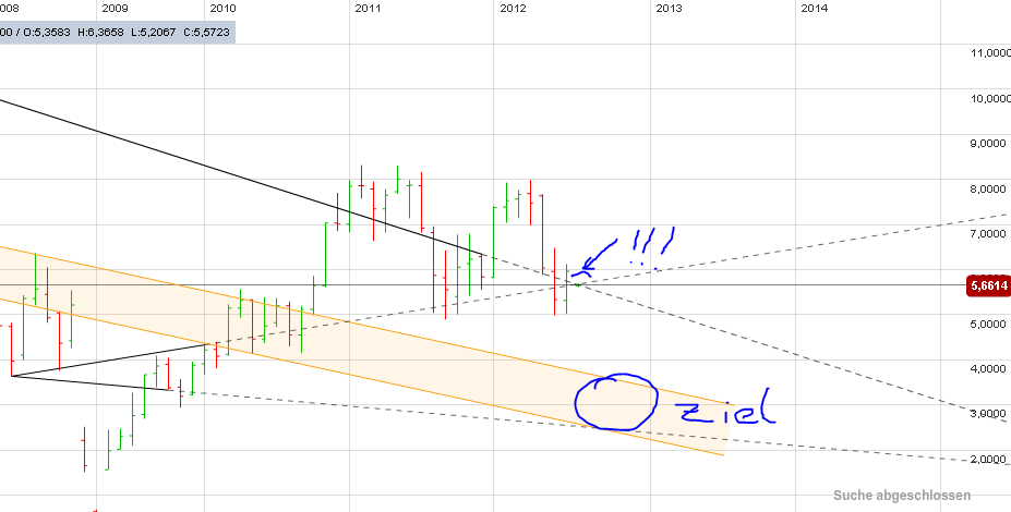Gewinn per Share für 2013 und auch für 2014 kommt laut Analysten bei weitem nicht an 2011 ran, ist zwar Zukunftsmusik, ich glaube den Schätzungen, oder schlimmer, auf jeden fall 2013 unter 2012 und das sollen nur 0,39€ werden