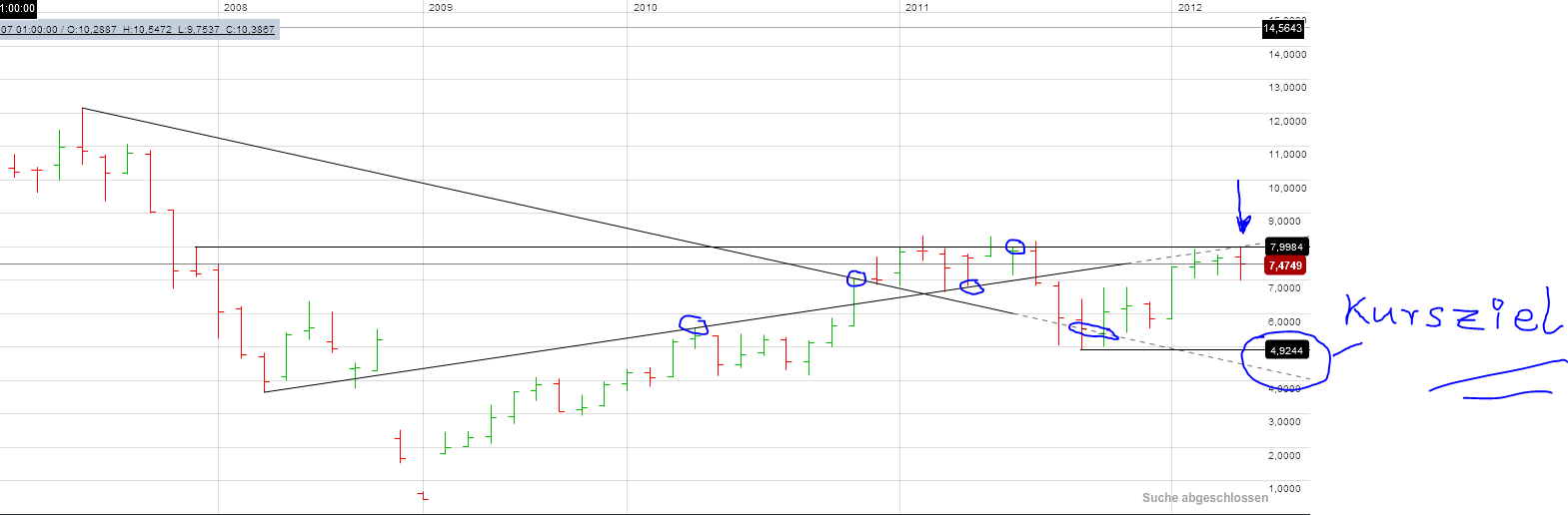 Der Anstieg von 2009 bis 2011 war meines erachtens viel zu hoch, nicht der Kurs ansich von 8.30€ , sondern er wurde nie richtig konsollidiert.