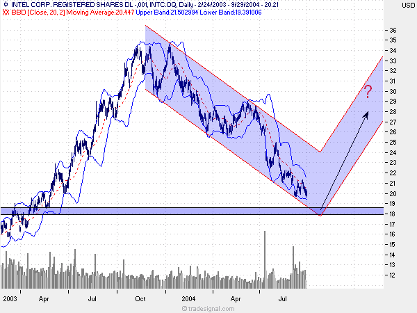 Ich rechne in den nächsten drei Monaten mit einer Markterholung bei den Halbleitern. Intel könnte bis Januar 2005 wieder auf 25 USD steigen. Mehr als ein kurzfristiger Trade scheint mir aber nicht drin zu sein.