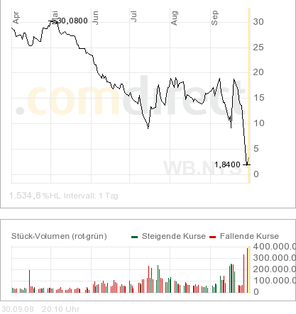 Damit spitzt sich die ungewöhnliche Übernahmeschlacht inmitten der Finanzkrise weiter zu. Citigroup hatte zu Wochenbeginn die Übernahme von Wachovia in einem Notverkauf vereinbart. Doch dann sagte Wachovia den Deal ab und gab stattdessen den Kauf durch Wells Fargo zu einem weit höheren Preis bekannt. Die Citigroup sprach von Vertragsbruch.