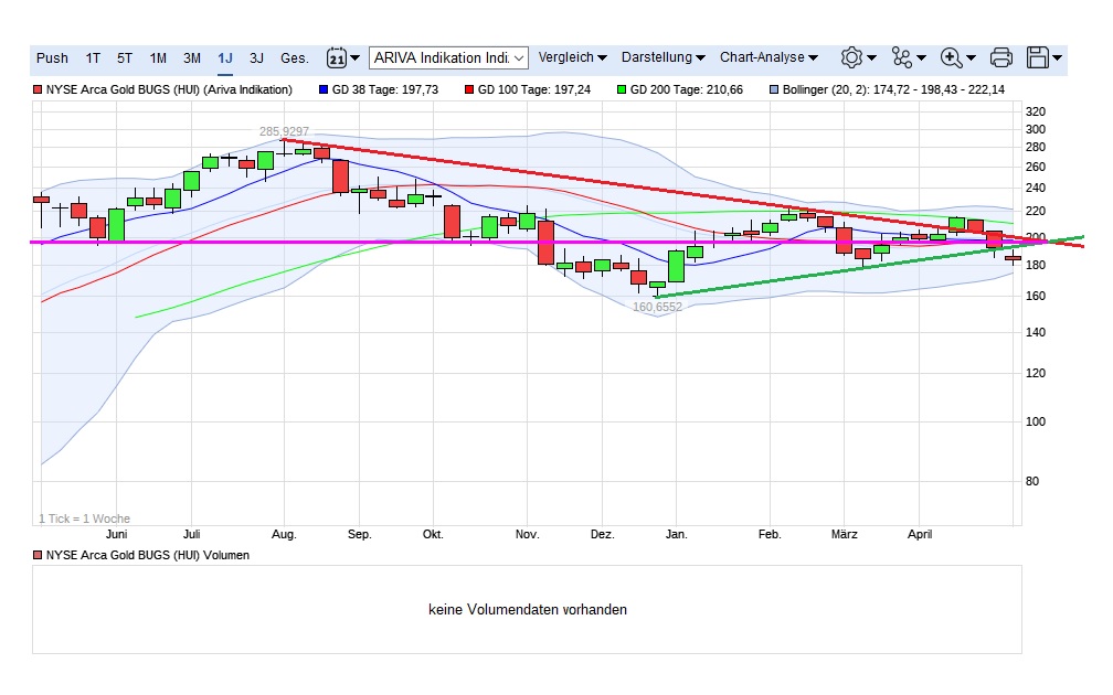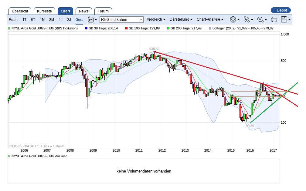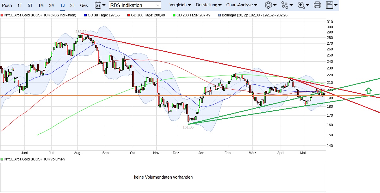Weiß diesbezüglich hier jemand, ob und wo es im Internet ein kostenloses Charting-Tool (mit der Möglichkeit Trendlienen einzuzeichnen) und aktuellen Kursen zum Arca Gold Bugs Index (HUI) gibt?
