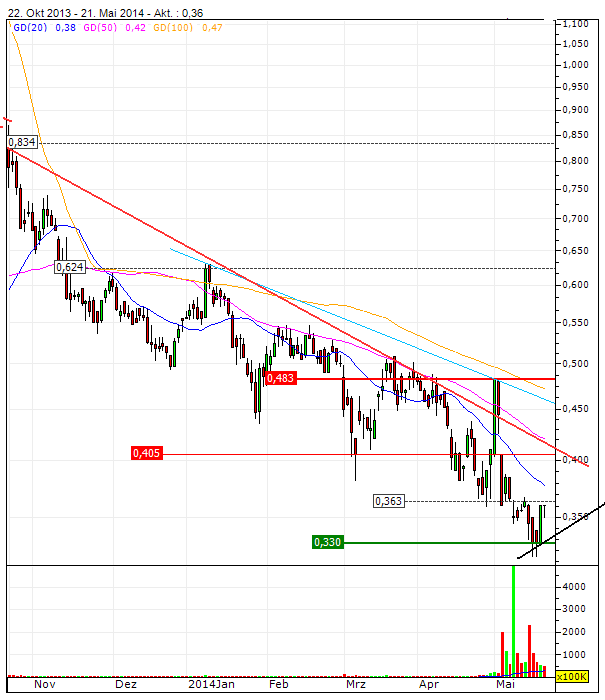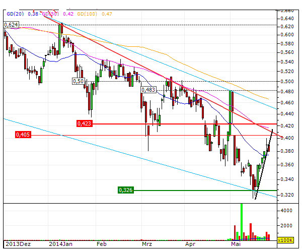 Der Kurs steht jetzt bei 0,38 EUR.