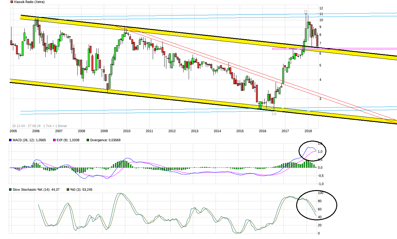 Fällt man wieder in den langjährigen Abwärtstrendkanal zurück oder bleibt es nur bei einem Pullback und man prall davon aus wieder klar nach oben anschließend ab? Indikatoren sehen bei längerfristiger Betrachtung leider weiterhin nicht gerade freudlich aus. Einige Leute waren jüngst offenbar überrascht, daß man erst säen muß bevor man ernten kann, d.h. man muß erstmal jetzt investieren in den neuen App-Dienst, wenn man über die Jahre einen immer größeren Abonenntenstamm aufbauen will. Das drückt auf den Gewinn in 2018. War aber doch auch so zu erwarten, oder?