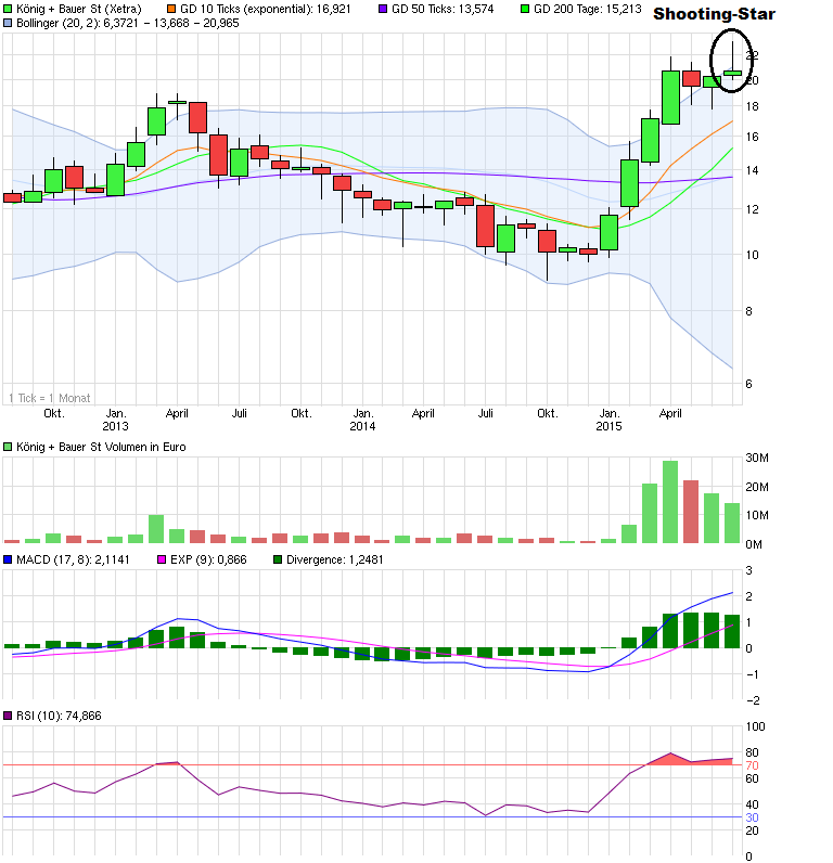 auch die KBA konnte sich dem heutige Ausverkauf nicht entziehen. Im "normalen" Kerzenchart zeigt sich auf Wochenebene eine Sternschnuppe, hier besteht immer die Gefahr auf die Ausbildung eines Abendsterns (bärische 3-Kerzenformation).