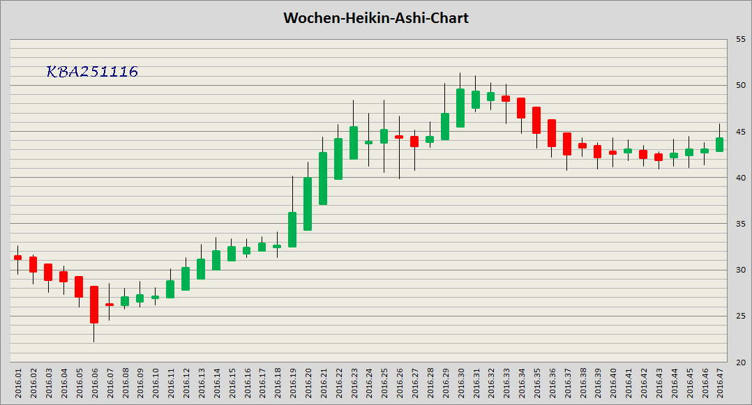 im 3-Liniendurchbruch gabs das erste Kaufsignal am 4.10., das zweite gestern, jeweils widerlegt bei einem SK unter 41,80. Erstes Anlaufziel wäre der 61,8%-Fibo-Level knapp bei 47Euro - ergäbe ein CRV von ca 2:1.