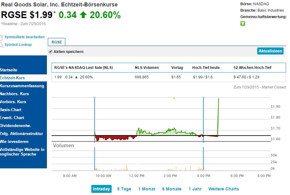 Kursrakete Real Goods Solar
