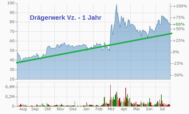 Trotzdem denke ich, dass sich die Chancen auf einen längerfristig guten Geschäftsverlauf deutlich verbessert haben. Wenn Dräger es schafft, tatsächlich einige Quartale in Folge gute Ergebnisse zu liefern, die dann auch in einer nennenswerten Dividende resultieren, werden dreistellige Kurse die zwangsläufige Folge sein.