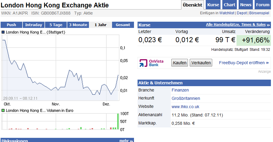 Wie schon heute morgen gesagt:die Ähnlichkeit zu gwd ist mehr als gegeben.Ob london auch auf €0,17 explodieren wird?Ich schliesse nichts mehr aus.Wer das sagen über die meisten Aktien hat,wird diese Frage problemlos beantworten können.