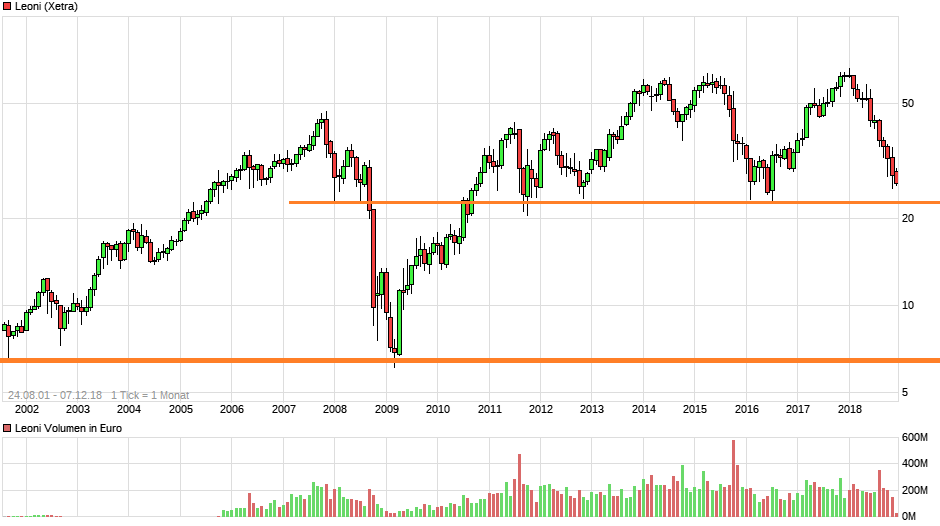 Traurig, daß es bei Leoni nicht mal dauerhaft nach oben geht, über Jahre hinweg fast ähnlich wie die Luftfahrtaktien, ein permanentes Auf und ab, obwohl das ein ganz anderer Sektor ist.