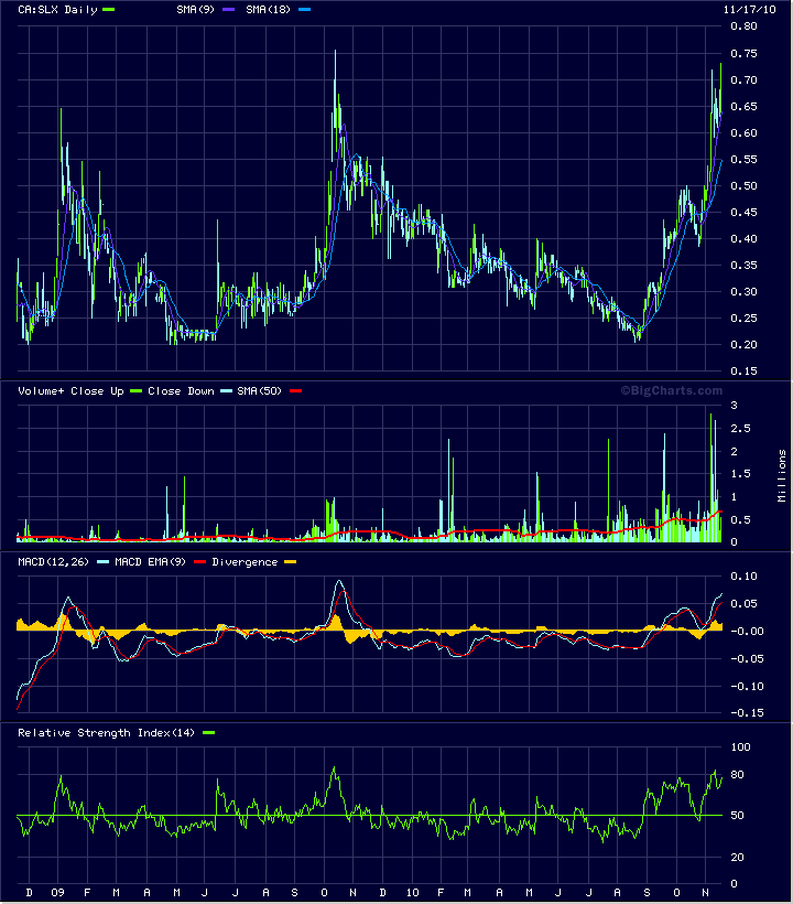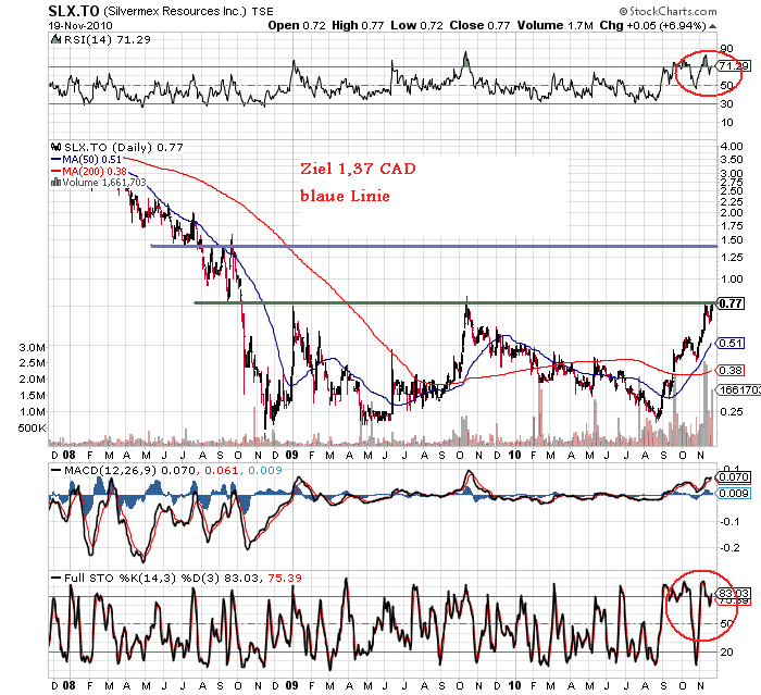 Charttechnisch sieht der Wert sehr gut aus.Wir stehen kurz vor dem 18 Monatshoch Ende 2009 welches dort bei 0,75 CAD auf Schlußkursbasis lag.