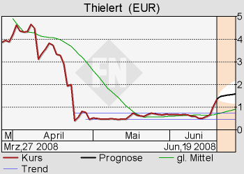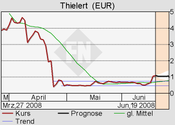 Thielert wird kurzfristig nicht weiter steigen. Die Prognose für Thielert (News/Aktienkurs) für Donnerstag den 26. Juni ist 1,06 Euro.