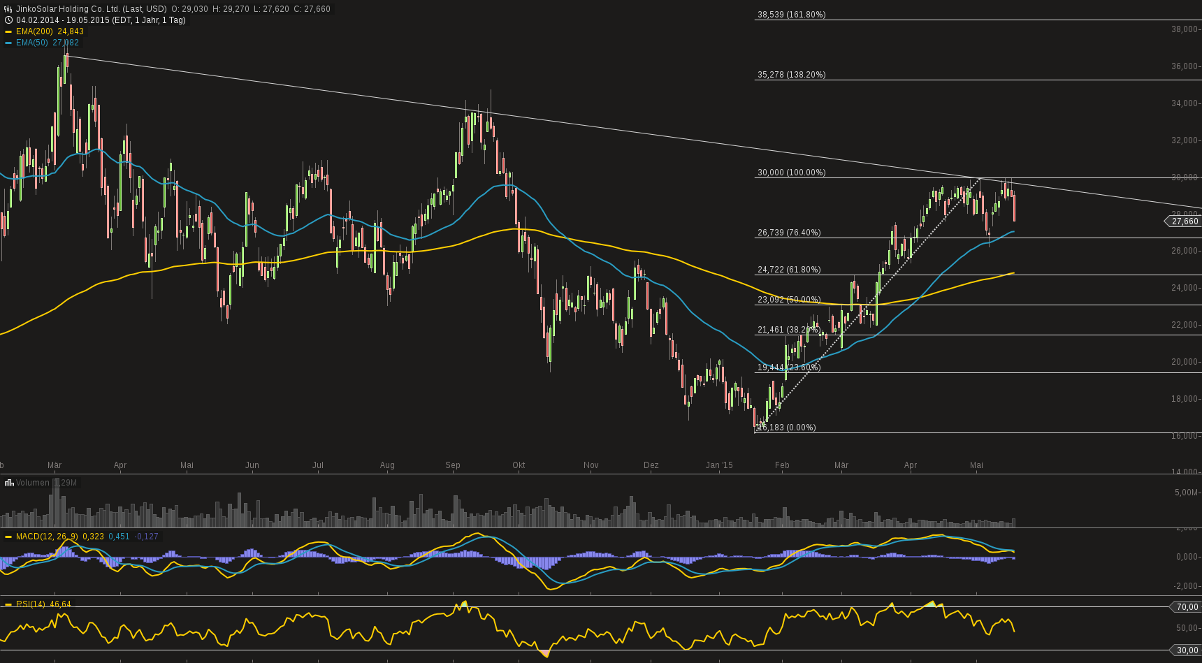 Nach dem ersten kleinen Rücksetzer bis zur Marke von 76,4% im Fibo-Level bei ca. 26,74USD, konnte nicht genügend Kraft gesammelt werden, um den Ausbruch nach oben in eionem wohlgemerkt sehr pos. Marktumfeld zu schaffen.