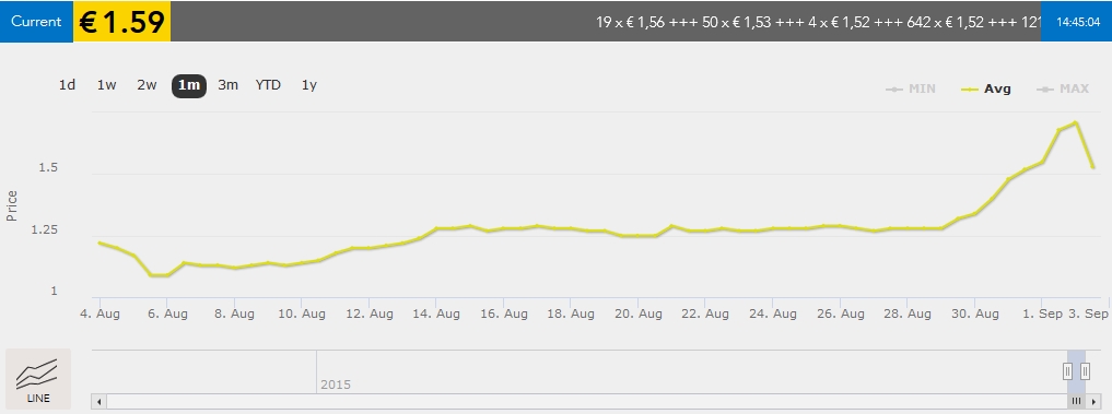 Somit Ordervolumen über 960 Stück mit einem Gegenwert von EUR 1.647,80
