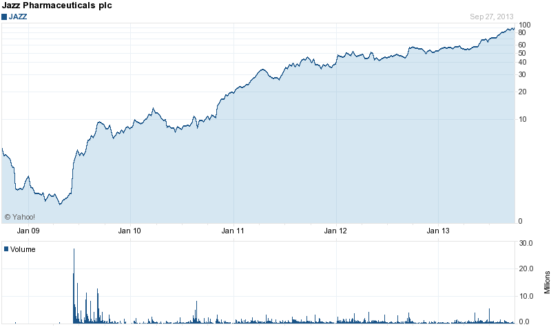 Du bist biotechanfänger und blickst nicht durch hast du gesagt. Vielleicht verstehst du etwas besser,warum ich solche Werte wie Lpath liebe ,wenn ich dir folgenden Chart von "Jazz Pharmaceuticals" zeige,einst auch eine Klitsche,aber nur eine zulassung und die 20.000% waren im Sack !!