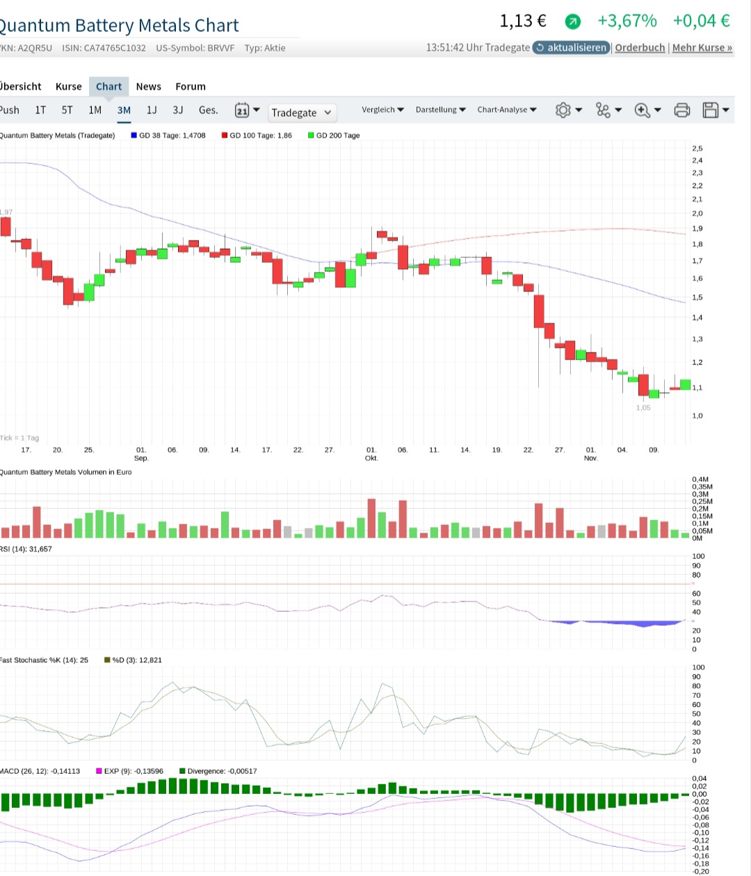 Desaströs Kursverlau­f ist ja beängstige­nd . Ich beobachte Quantum schon länger , standen damals bei 3,24 € , jetzt bei 0,65 !?