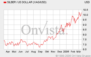Vor einigen Wochen haben wir Ihnen unsere bullische Einstellung zum Silberpreis und Silberwerten vorgestellt. Wir erwarten weiterhin das Aufsetzen eines Silber ETF (Exchange Traded Fund), der den Silberpreis über die psychologische Hürde von 10$ steigen lassen könnte. Dass dies nun schon aufgetreten ist, ist jedoch eher auf Streiks mexikanischer Minenarbeiter als auf den ETF zurückzuführen. Wie auch immer, unsere ausgewählten Silberwerte laufen wie erwartet gut. Wir gehen auch weiterhin von einem positiven Verlauf auf dem Silbermarkt aus. Nicht zuletzt die von Anlegern heiß erwarteten ETF Einführung sehen wir als Auslöser weiterer Anstiege. Der jüngste Streik zeigt allerdings auch, wie illiquide der Silbermarkt ist. Vergangenen Freitag verteuerte sich Silber über 4 % auf ein neues 22-Jahre Hoch von 10,23 $ an der NYMEX.