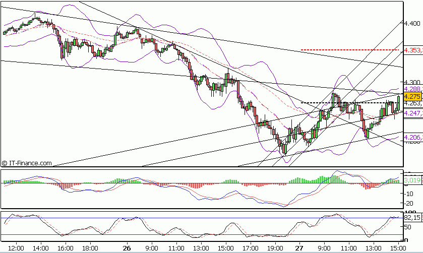 Im Moment hatten wir z.B. eine positive Divergenz im 10min Chart (DAX/SXSE). Im hourly sind wir noch im Abwärtstrend (DAX ca.7583, SXSE 4370 STARK FALLEND). Heute könnten wir es darüber schaffen und dann man Ziele Richtung SXSE: 4400, DAX: 7700 anpeilen.