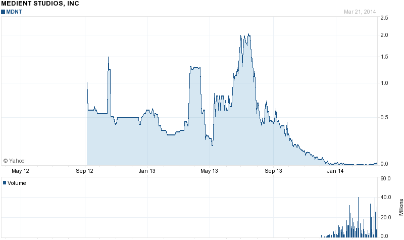 EFFINGHAM COUNTY, GA--(Marketwired - Mar 25, 2014) - Medient Studios (OTCQB: MDNT) announced today that the first movie in the 2014 slate will be "The Damned." This will be Medients's fifteenth feature production and follows the successful production and release of the British horror film "Storage 24."