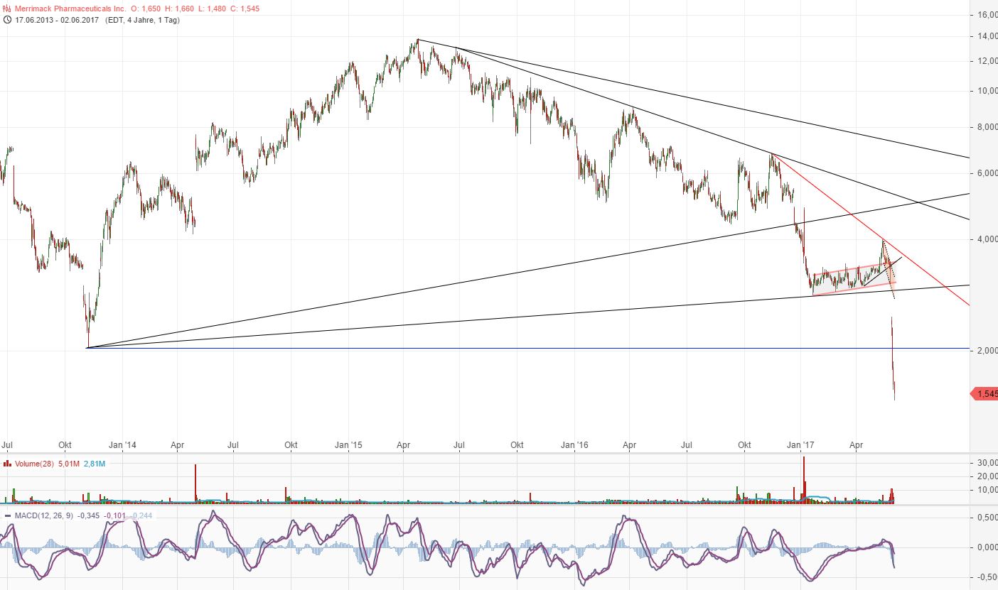 Merrimack Pharmaceuticals - ist ein relativ kleines Biotechunternehmen aus den USA mit einer guten Forschungspipeline und einem zuglassenen Produkt (nur US) -Onivyde- gegen Bauchspeicheldrüsenkrebs. Die Chance auf eine Zulassung in Europa stehen gut Onivyde also just got the "thumbs up" from The European Medicines Agency's Committee for Medicinal Products for Human Use.