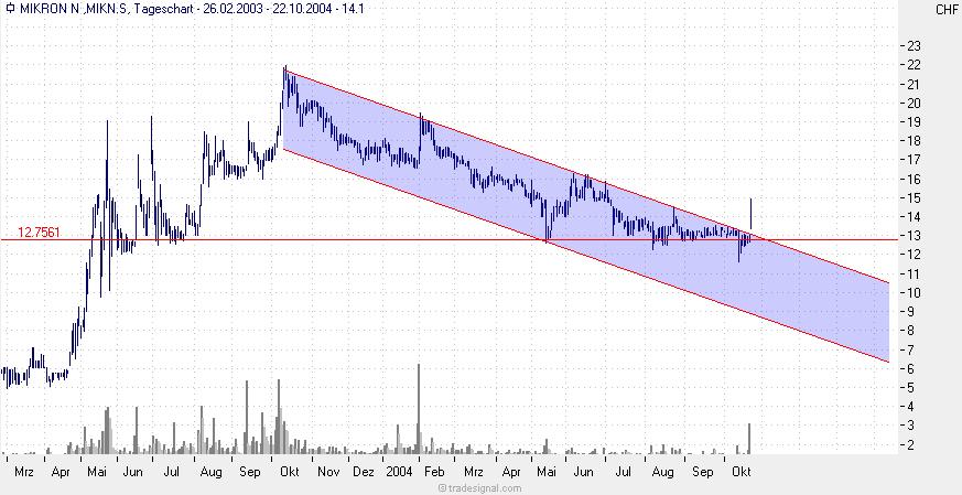 charttechnisch ist die Aktie aus einem längeren Downtrend nach oben ausgebrochen. Hier dürfte weiteres Kurspotenzial bis ca. 16 CHF folgen. Die Aktie ist jedoch mit einem KGV von über 30 überbewertet. Aufpassen !