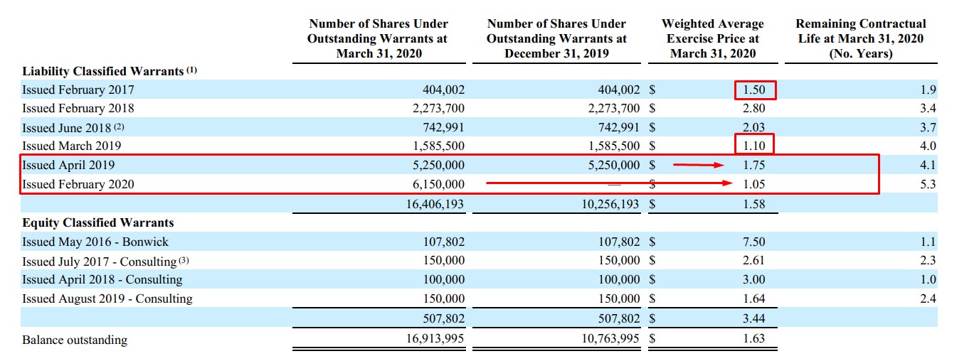 Der Kurs reagiert kaum auf News bzw. steigt im vorbörslichen Handel und die Gewinne werden dann sofort wieder abverkauft bzw. runter geshortet. Hier die aktuelle Warrant-Situation. Die $1.10 Warrants sind ab dem 10.08.2020 ausübbar und Moleculin könnte dann weiteres Cash aus Warrants bis zu $2.80 gewinnen, was natürlich auch mit einer Verwässerung verbunden ist.