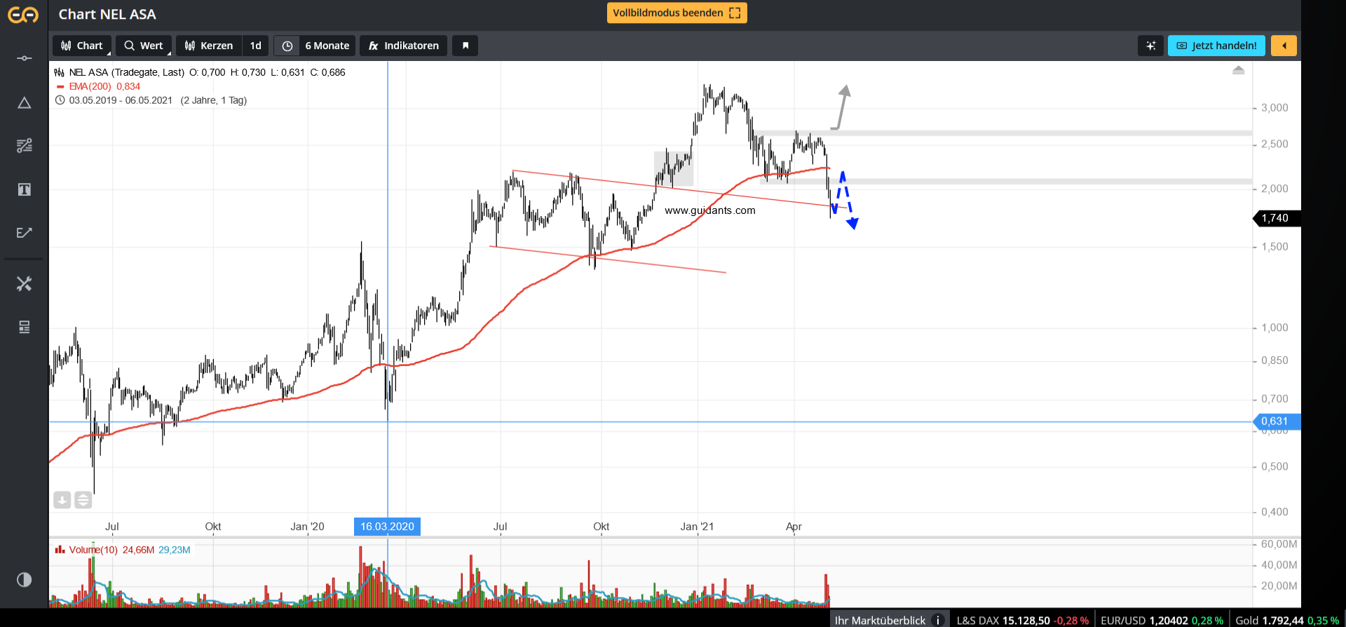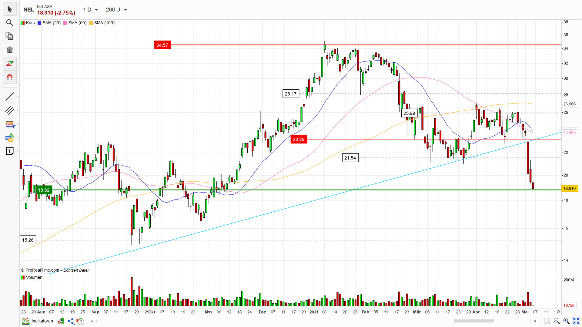 Bei 1,68€ hat sich Nel vom Top halbiert