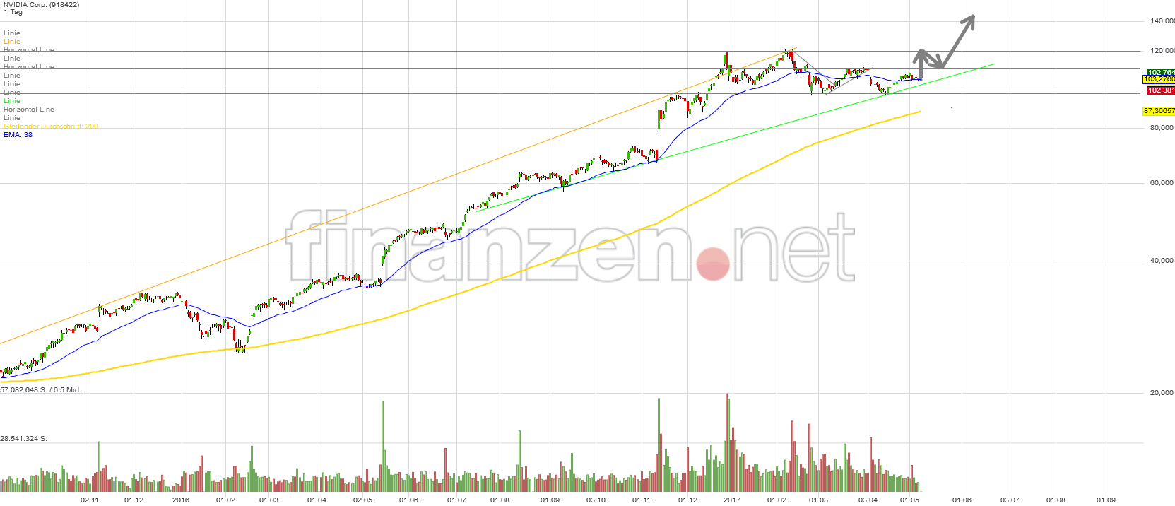 Um 20 Aktien zu 95 Euro nachgelegt, glaube an das Unternehmen und denke das man hier etwas solides hat. Bei Facebook, Netflix und Snapchat bin ich da eher skeptisch, ob da wirklich Werte dahinterstecken. N Vidia ist Marktführer in ihrem Berreich, geht vom Gameing-Segment in mehr gewinnverspechende Bereiche. Wobei wir auch beim Gameing in den nächsten Jahren Zuwächse erwarten werden, vor allem mit neuen Techologien wie VR/AR, die starke Prozessoren vorrausetzen. Auf der anderen Seite haben wir die schwächelnde Konkurrenz AMD, die vor allem finanzielle Probleme hat. Die Generation, die mit PC Spielen nix mehr anfangen kann, stirbt aus...Ich bin durch die neuen Partnerschaften mit Bosch, Daimler /Tesla etc, sehr überzeugt. Hier ist richtig Geld zu verdiehnen.
