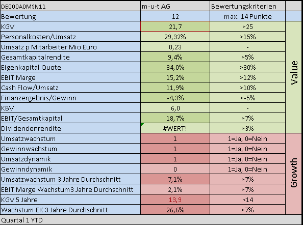 Umsatz und Gewinn wachsen, Ek wächst mit jährlich 27%. Ein KGV von 21 macht das Paket noch günstig.
