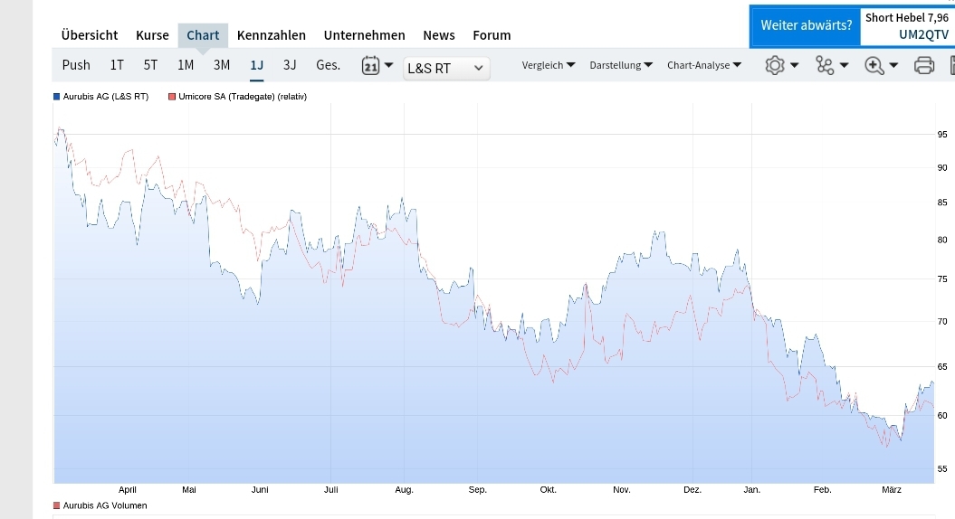 Ebenso wie z.B. für Aurubis. Schaut mal auf die Kursentwicklungen, finde ich interessant. Habe ich sinngemäß auch dort geschrieben. Wer die Wahl hat.. :) Mal sehen, welcher Wert sich schneller oder stärker erholt.