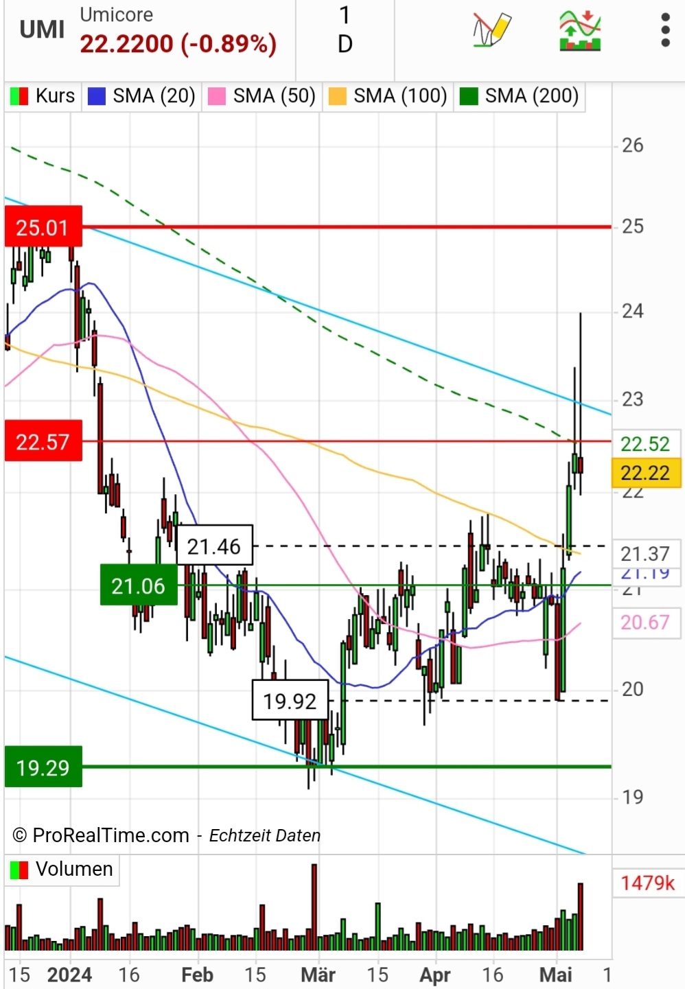 Die 24 sind charttechnisch relevant. Bis Ende der Woche müssen die jetzt halten.