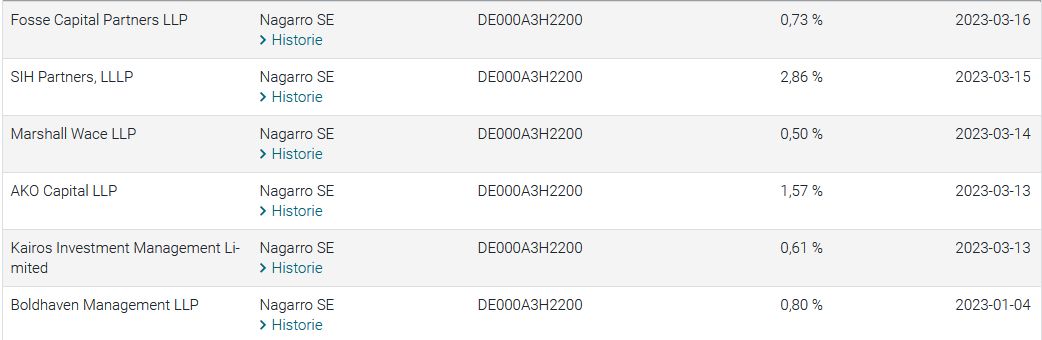 @Ukka "Bundesanz­eiger"" (googlen).­ Dort den Link zu den Leerverkäu­fen. Und dort kannst du dann über ein Suchfeld gezielt nach einer Aktie suchen. In der Treffer-Li­ste kannst du dann auch die Historie zu jeder Position (Zugang/Ab­gang) einsehen.