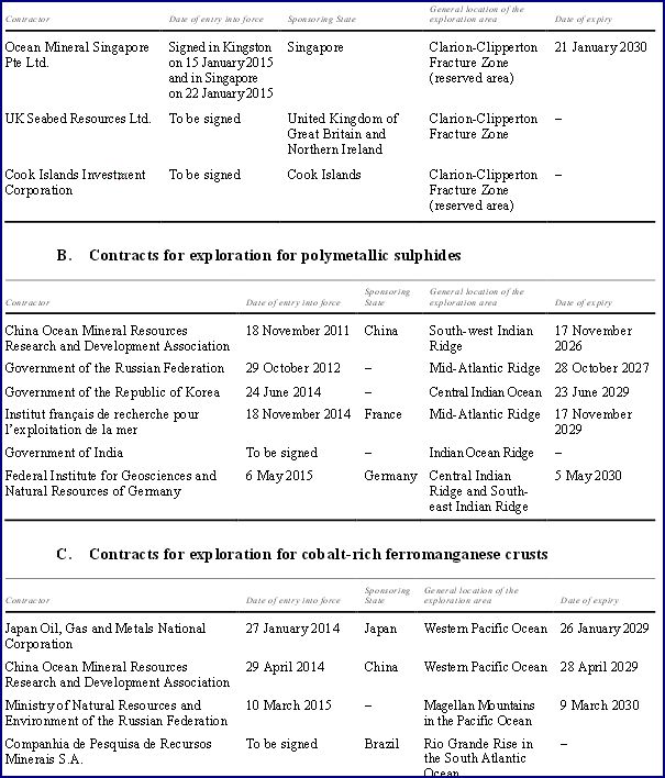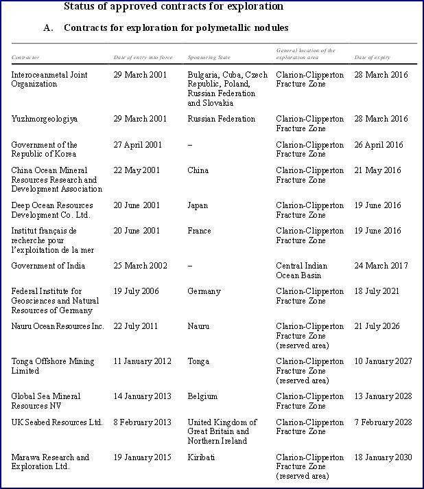 Status of approved contracts for exploration -2
