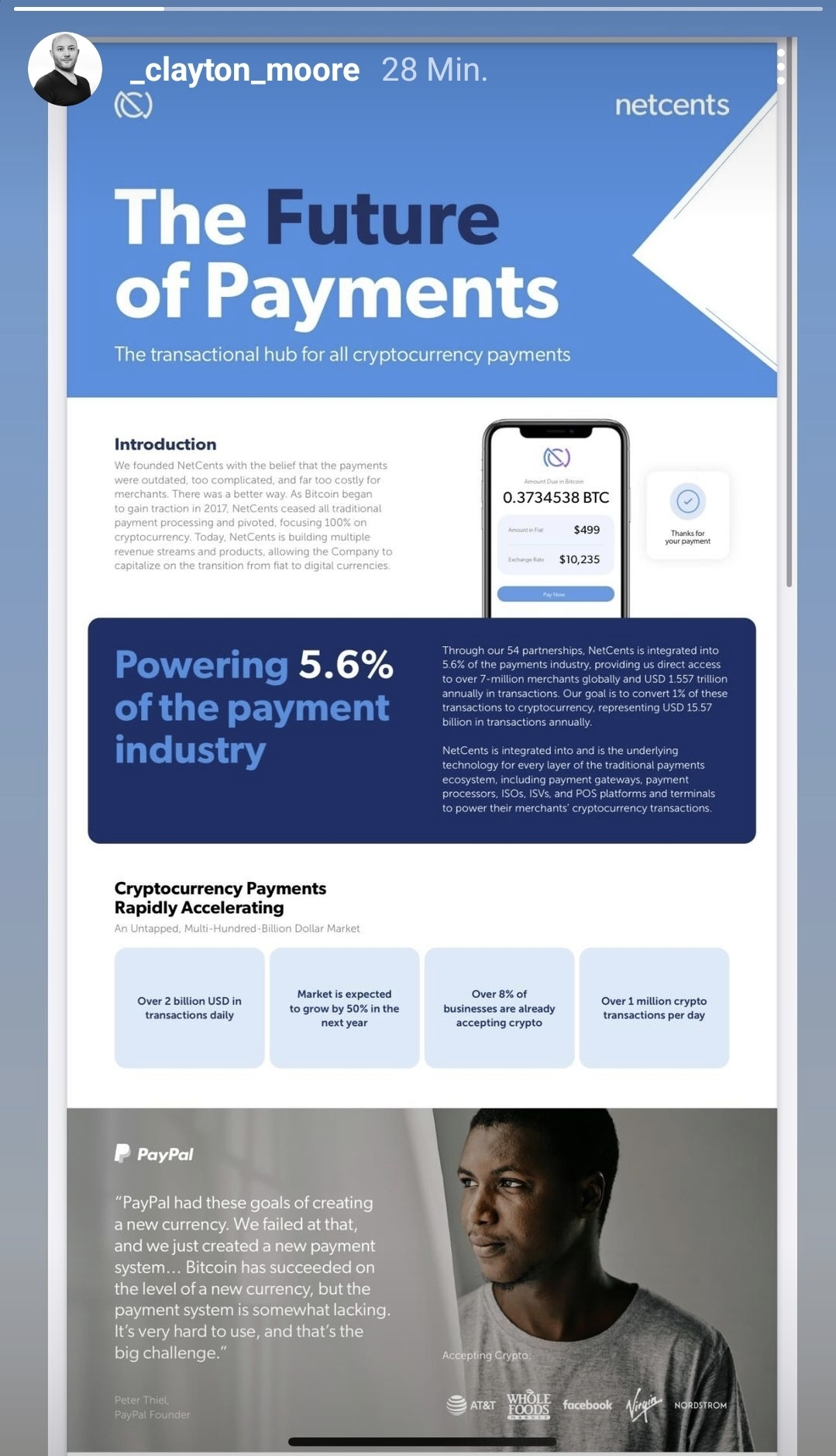 Kein Wunder! Welcher potentielle Käufer dieser Mikro-Gesellschaft glaubt denn einem CEO der Nichts auf die Reihe bekommt? Und mit einer Mikro-Mitarbeiterzahl von 13 Leuten, inklusive Management, behauptet er dass NetCents einen großen Kundenstamm betreut.