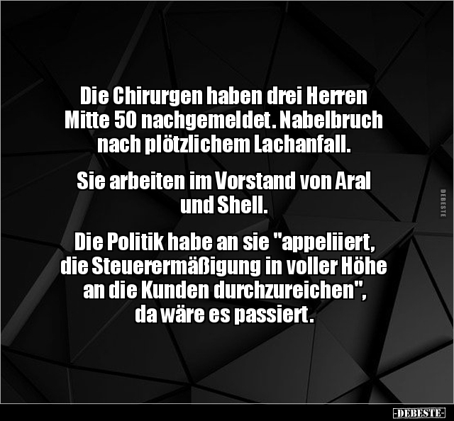 ich habe heute früh festgestellt, daß, wenn ich auf dem Rücken liege, fast keinen Bauch mehr habe.