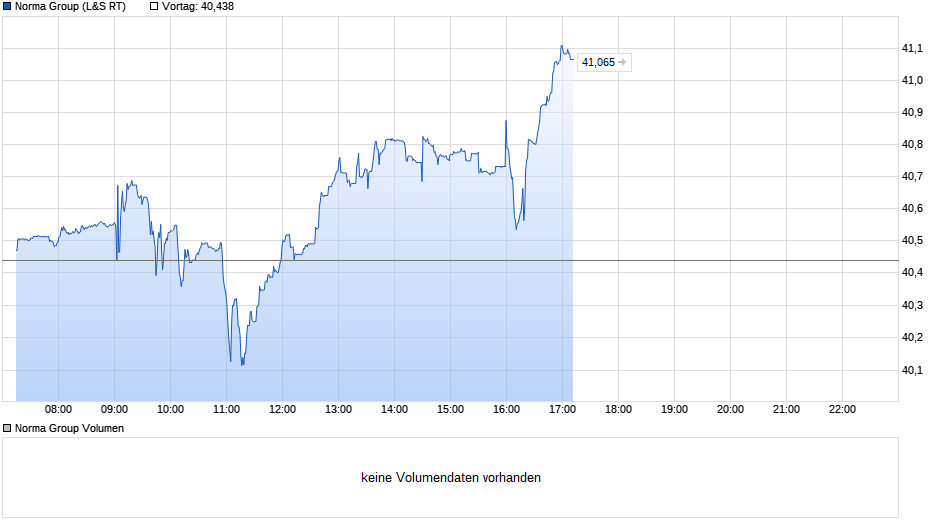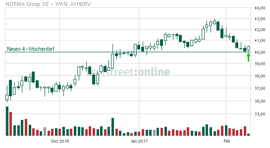 Tradegate 40,081/40,26 Euro Bestätigt die These, dass die weniger stabilen Anleger in Norma Group AG bereits in letzter Abwärtsbew­egung rausgekege­lt wurden, da bei diesem Rücksetzer­ keine Anschlußve­rkäufe unter 40 € ausgeführt­ wurden.