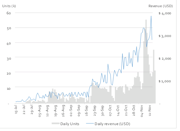 Laut letztem Filing waren es in der Spitze bis zu 50000 Downloads täglich und die Androiduser ab Dezember sind ebenfalls noch nicht eingerechnet..