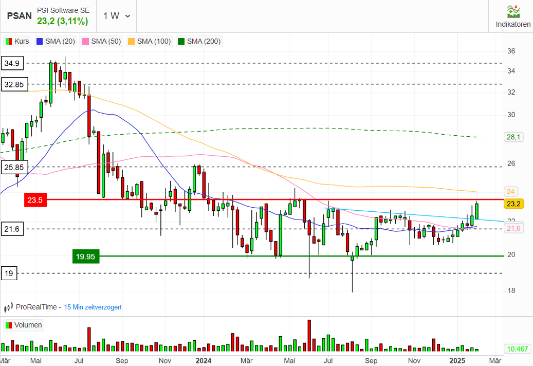 Wäre schön, wenn der massive Widerstand bei 23,50 € endlich dauerhaft überwunden wäre.